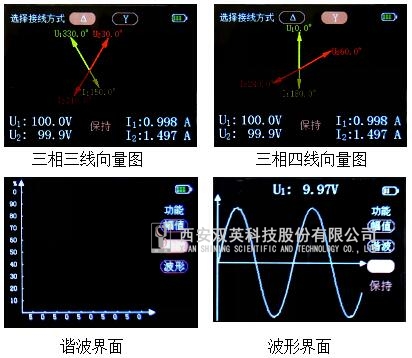 2、2.4寸高分辨率(320*240)真彩色TFT顯示,可顯示電壓和電流真有效值、相位、頻率、功率、功率因數(shù)等電參數(shù),測量結(jié)果以向量圖、幅值、相位、功率等多種方式顯示。